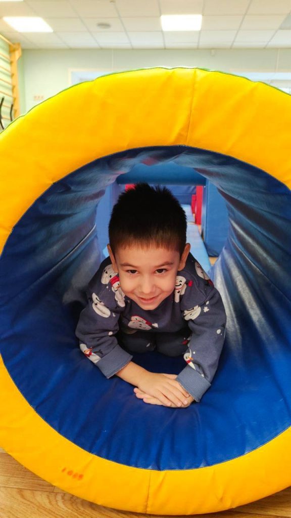 В отделении «Родничок» инструктор по лечебной физкультуре занимается развитием двигательных навыков с малышами