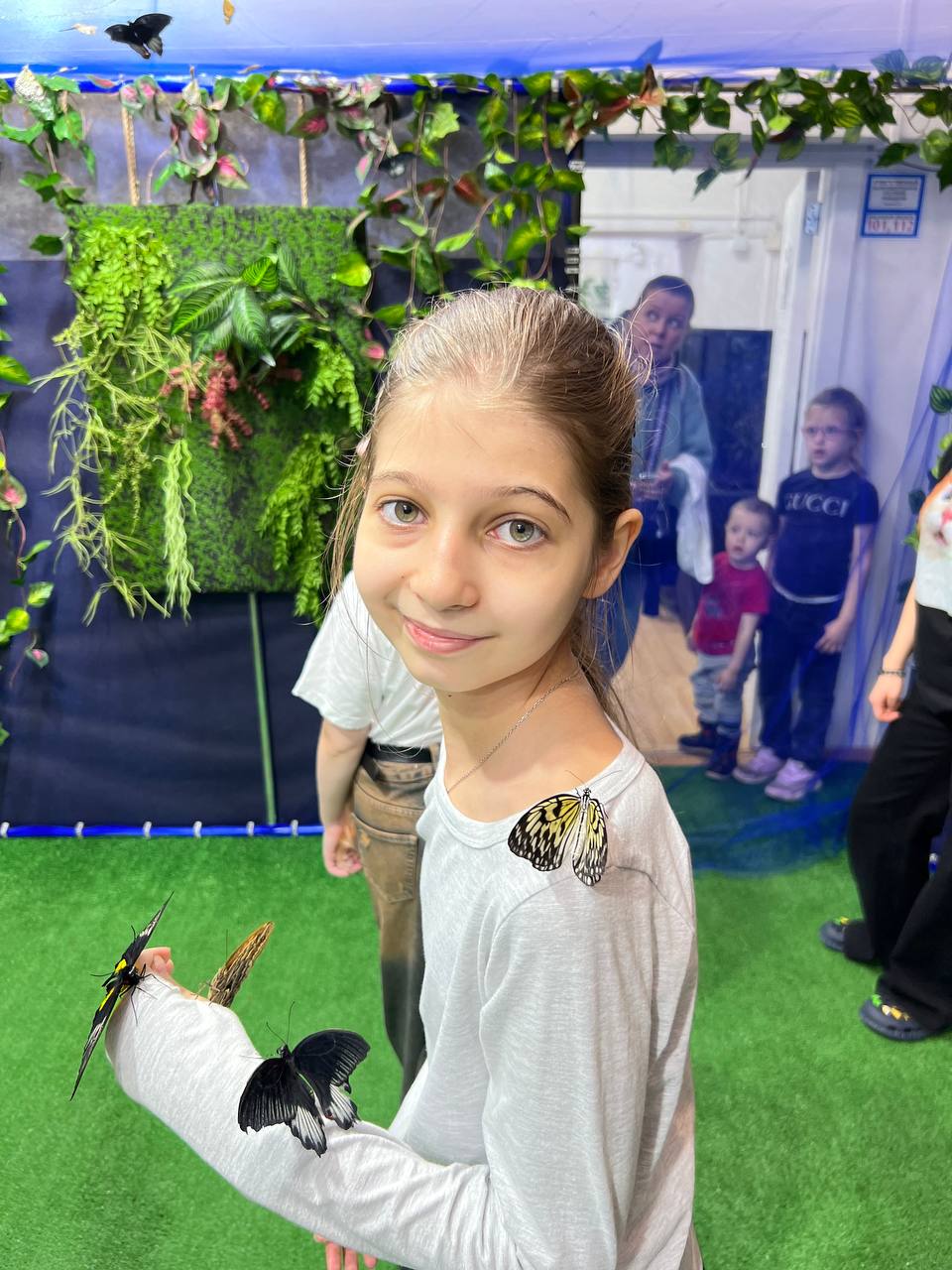 А самым волшебным моментом для всех стал шатер с живыми бабочками! 🦋 В этом тропическом раю разноцветные красавицы доверчиво садились детям на ладошки, плечи и самые макушки! В их глазах читался неподдельный восторг и счастье — момент, который точно останется в памяти. 💞