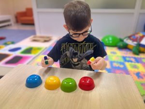 2. Зрительно-моторная координация 👀➡️✋ Мозг должен быстро обработать зрительный сигнал (увидеть цвет на карточке) и мгновенно отдать точную команду рукам (перевернуть молоток нужной стороной и ударить). Такая тренировка незаменима для подготовки руки к письму.